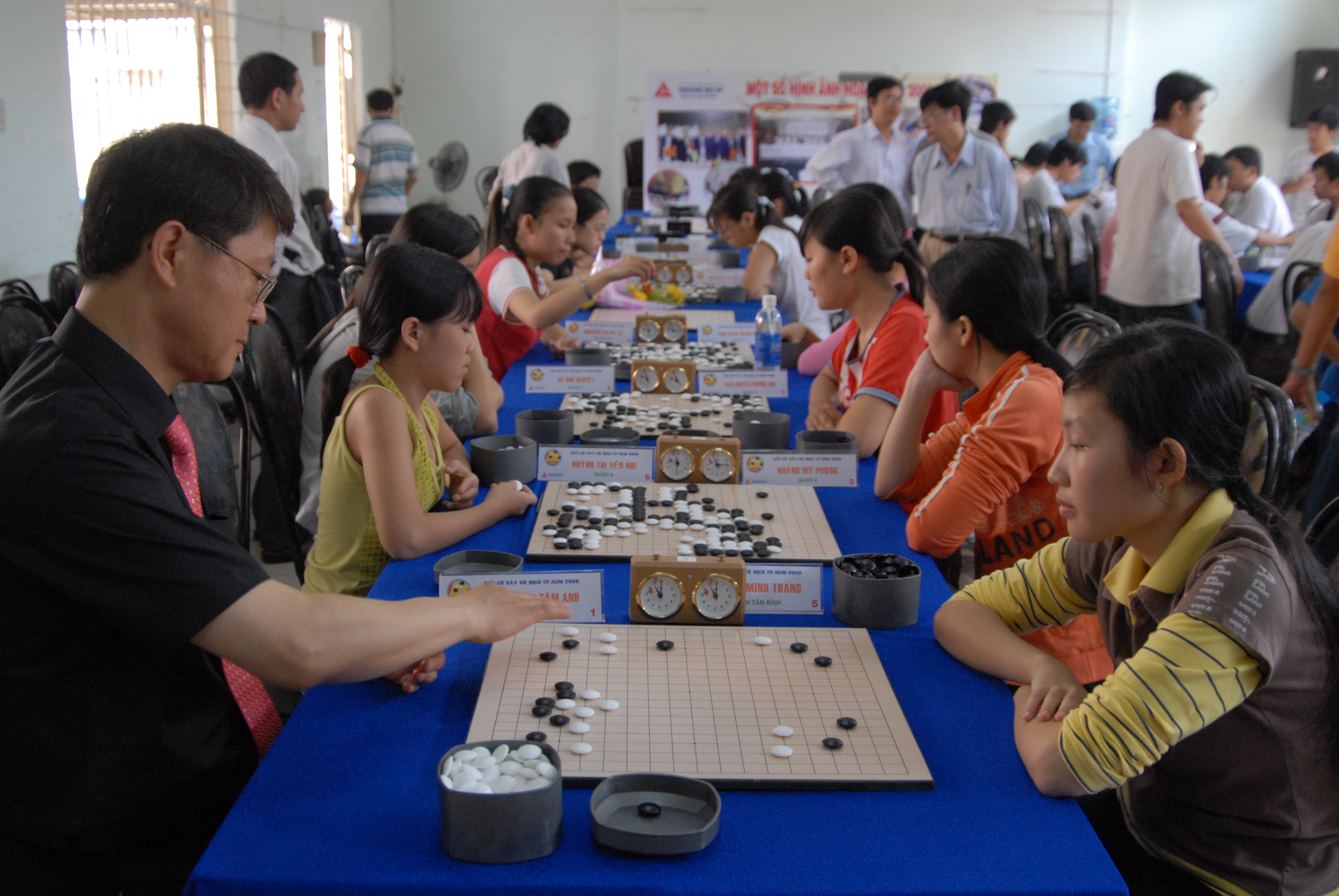 Ảnh trên: Ông Kim trao giải “Kỳ thủ triển vọng” tại giải vô địch cờ vây TP.Hồ Chí Minh 2008 được tổ chức tại Quận 3.