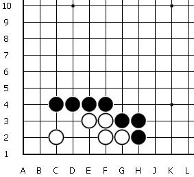 Bài tập này khá quen thuộc trong các lớp học cờ vây và giáo viên có thể phát triển bài tập này ra thêm khoảng 10 bài tập “vệ tinh” khác.
