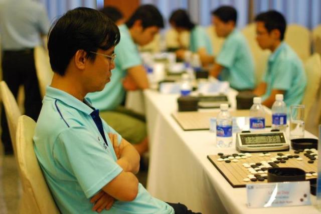 Tôi nói thêm về các ván đấu của tôi. Sau khi thắng hai ván đầu trước Tâm và Dương, ván thứ ba là rất quyết định trước Phạm Anh và tôi thua đau. Ván thứ tư gặp Bình thì thua không có gì “bào chữa”.  Ván năm quyết định bỏ LSM và trở lại TGL thì …gặp học trò rất siêng năng (nhưng vẫn chưa cứng cáp) của tôi là Tô Phước Thái và thắng không có gì bàn. Ván thứ sáu thua Lâm thì …bình thường thôi. Muốn kể nhất là ván thứ 7 gặp Dương Gia Bảo. Một ván đấu trị giá 8 chai và có lẽ còn hơn thế nữa! Vào khai cuộc tôi cầm đen triển khai hai góc và chuẩn bị thế “tam liên tinh” (TLT) quen thuộc! Thế nhưng ở thời điểm này Bảo không đi ngay mà “khựng” lại hơn 1 phút. Linh cảm mách bảo tôi rằng em ấy sẽ đặt vào đúng con sao giữa của thế TLT. Và đúng thế khi Bảo gõ cái “cốp” vào “não” của tôi, tôi như nhảy dựng lên. Lúc đó tôi vừa “điên” và vừa “sợ”. Tôi cũng phải ngồi lặng một hồi để lấy lại bình tĩnh. Tôi nhớ lại một năm trước, khi ngồi với thầy Lee chuẩn bị LS 2011, tôi tỏ ý rất lo ngại sẽ có người sử dụng thế phá TLT này và nhờ thầy giúp làm sao vẫn có thể triển khai đúng Style của mình. Nhưng không có phương án nào là thỏa mãn và thầy kết luận là chỉ có đi lấy góc còn lại là tốt nhất. Dù không có Moyo lớn nhưng đặc biệt tốt cho Korea Style vì lúc này bạn đã được chấp 1,5 handi. Tuy nhiên sau đó tiếp tục đánh thì hình cờ của tôi vẫn không ổn chút nào. Nếu Level của Bảo đạt tới tầm của Bình thì có lẽ ván này tôi thua. Tuy nhiên những hạn chế về trình độ cờ của Bảo đã giúp tôi mau chóng lấy lại ưu thế và cuối cùng tôi bắt được “nguyên con rồng” giành thắng lợi trung cuộc. Chiến thắng này giúp đội nam TP.HCM đoạt huy chương đồng (tổng tiền thưởng 7 chai) và giúp tôi hạng 8 và có thêm 1 chai trong trận “Betting” với Bảo!